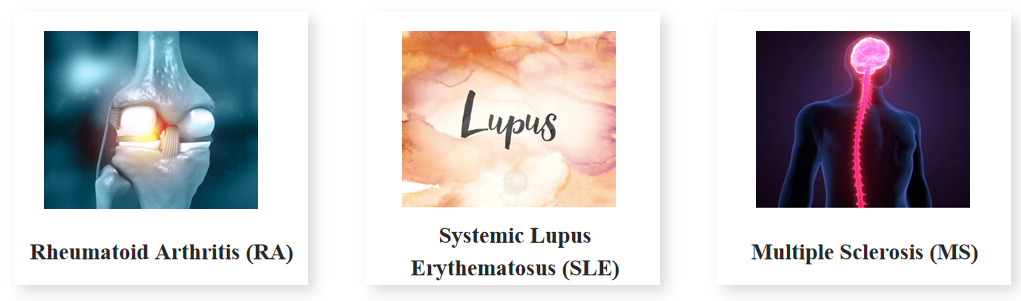 RA、SLE、MS では、サイトカインが重要な調節因子として働き、炎症と免疫反応を媒介します。RA では、TNF-alphaや IL-6 などのサイトカインが関節炎を引き起こし、SLE では、IFN-alpha やIL-10などのサイトカインが自己抗体の生成と免疫調節異常に関与します。MS では、GM-CSFや IFN-gamma などのサイトカインが神経炎症を促進します。