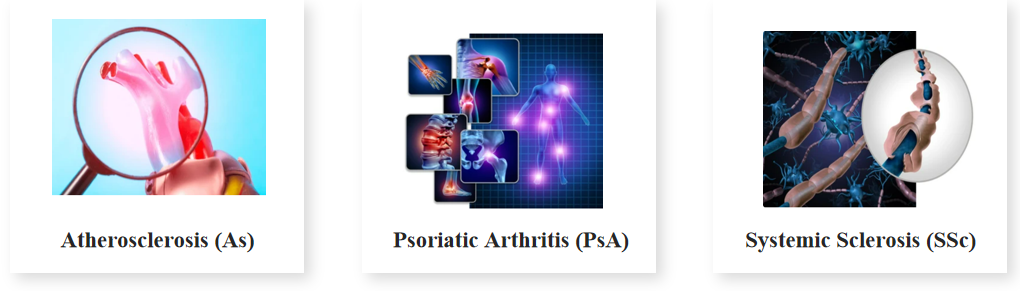 サイトカインは As、PsA、SSc でも重要な役割を果たしています。As では、TNF-alpha やIL-17などのサイトカインがプラーク形成と血管炎症を促進します。PsA では、IL-12/IL-23 などのサイトカインが炎症反応に関与し、関節損傷を加速します。SSc では、TGF-beta や IL-4 などのサイトカインが炎症、血管、線維化プロセスの調節に関与します。