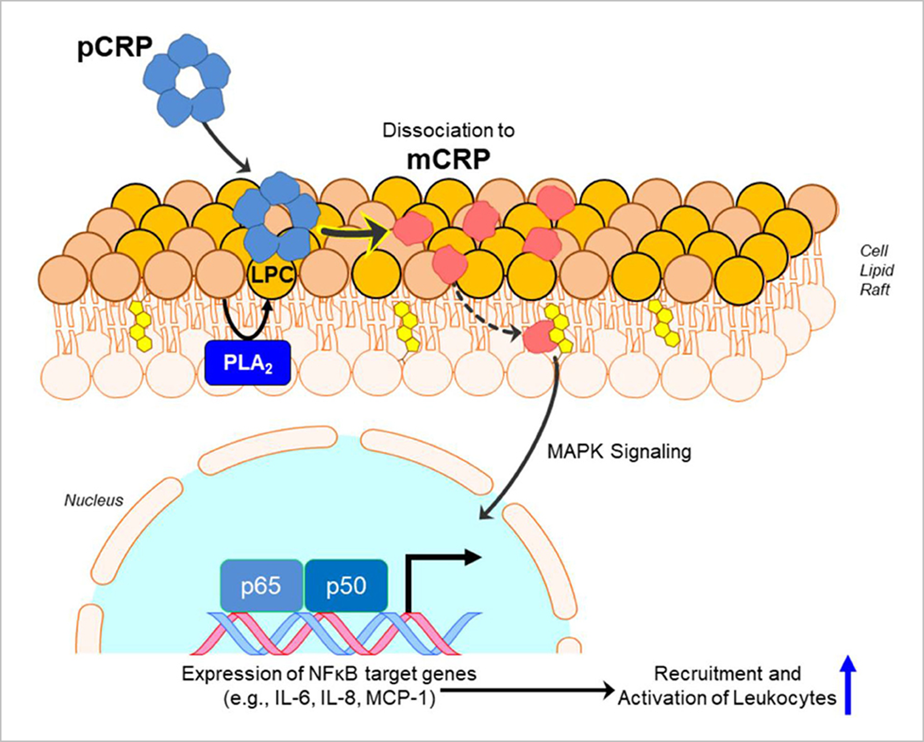 - 5量体CRPが解離することで生じる単量体CRPには、強いpro-inflammatory活性があります。