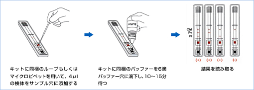 を、三日熱マラリア (Pv) の同定には、Plasmodium Lactate