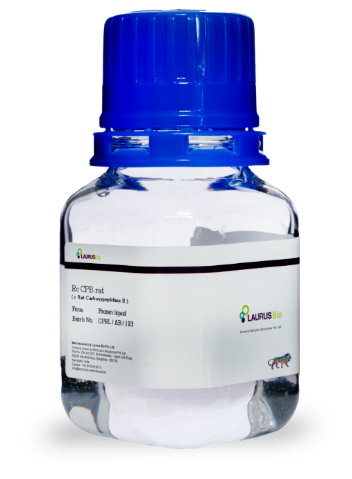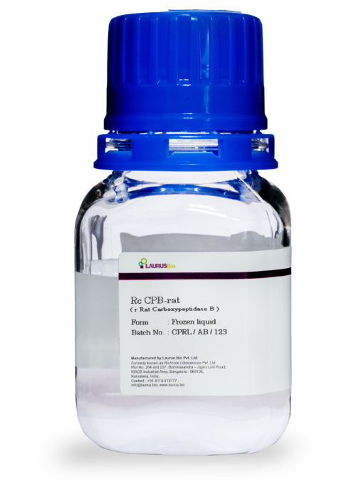 カルボキシペプチダーゼBは、リシン・アルギニン・オルニチンといった、塩基性アミノ酸に特異性を持つ34.5 kDaのエキソプロテアーゼです。Laurus Bio社の製品は、ピキア酵母で発現させた307アミノ酸長であり、組換えDNAテクノロジーと同社のGMP認証を受けた製造設備においてAOF工程によって製造されています。