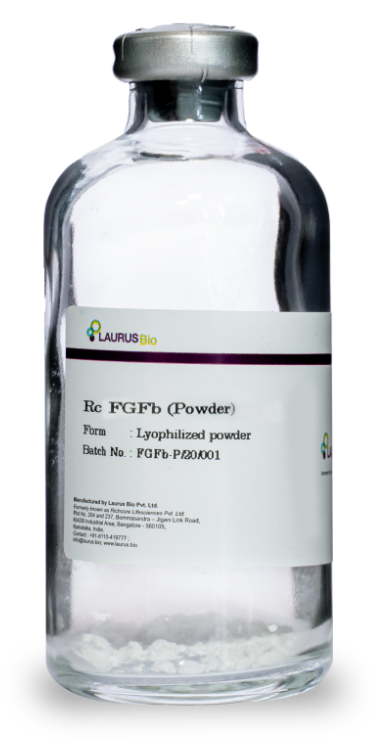 塩基性繊維芽細胞成長因子(FGFb)は、23種の繊維芽細胞成長因子ファミリーの1種です。胚性幹細胞、神経幹細胞、間葉系幹細胞、内皮細胞において、成長と増殖を促進します。また、FGFbは胚発生やがんなどの疾患進行においても機能します。それは脂肪細胞によって発現し、血中の脂肪の濃度と相関関係があります。Laurus Bio社のFGFbは大腸菌で発現させた155アミノ酸長です。