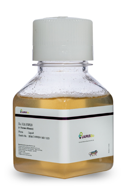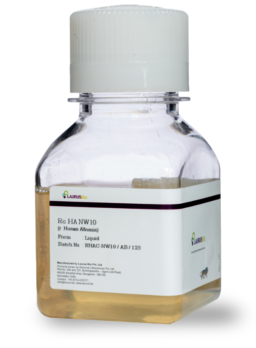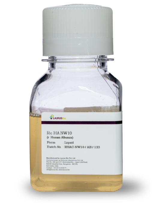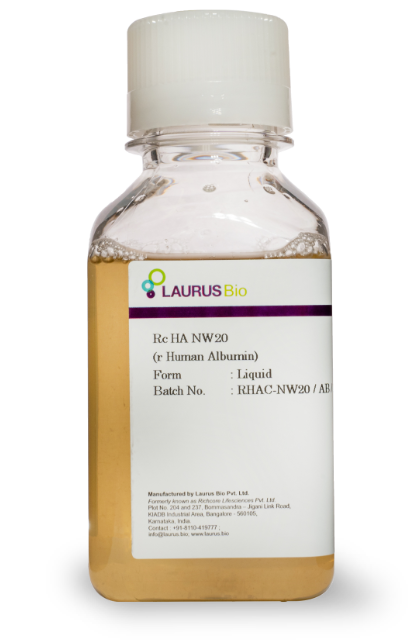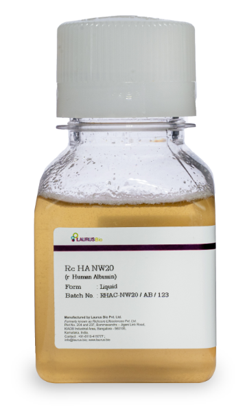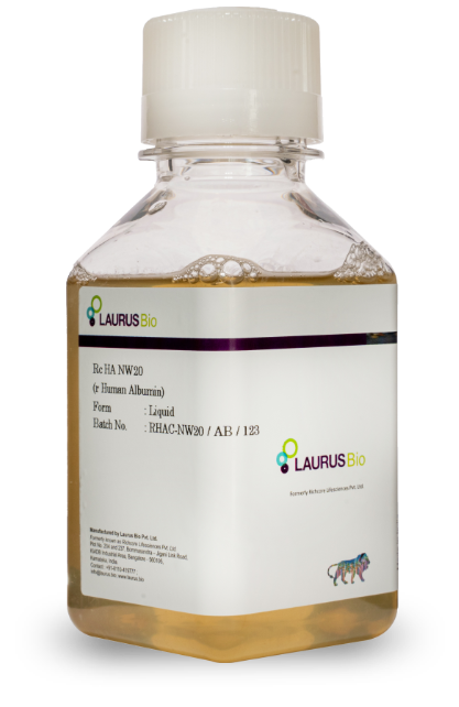 肝臓で生成される球状タンパク質の1種であるアルブミンは、血中で最も豊富なタンパク質です。それは、ホルモンや脂肪酸、甲状腺ホルモン、他の生体化合物の運搬における重要な役割を担い、また、バッファーとして働き、血液のpHの維持に貢献します。アルブミンは、膠質浸透圧のコントロールやフリーラジカルの除去によって恒常性を維持します。また、抗凝固と抗炎症の特性も持ちます。Laurus Bio社のアルブミンは、ピキア酵母で発現させた585アミノ酸長です。