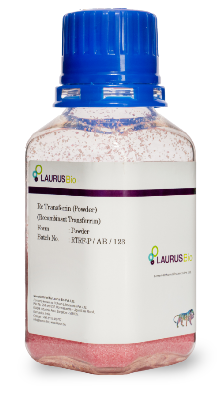 トランスフェリンは、肝臓で発現する血漿の糖タンパク質であり、鉄との可逆的な結合と細胞への運搬によって、体液における遊離鉄の濃度を調節します。Laurus BIo社の製品は、ピキア酵母で発現させた679アミノ酸長であり(非糖化配列)、最も重要な鉄プールを形成させることで、細胞外の鉄貯蔵と運搬を促進します。トランスフェリンに仲介される鉄の取り込みは、細胞上でのトランスフェリン受容体の発現の調節によってコントロールされています。